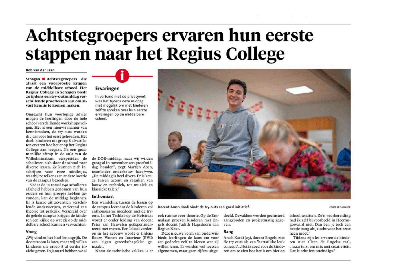 De sfeer was uitstekend: de groep 8-leerlingen waren zichtbaar enthousiast en verlieten de campus met een glimlach én een goed beeld van wat het Regius College te bieden heeft.